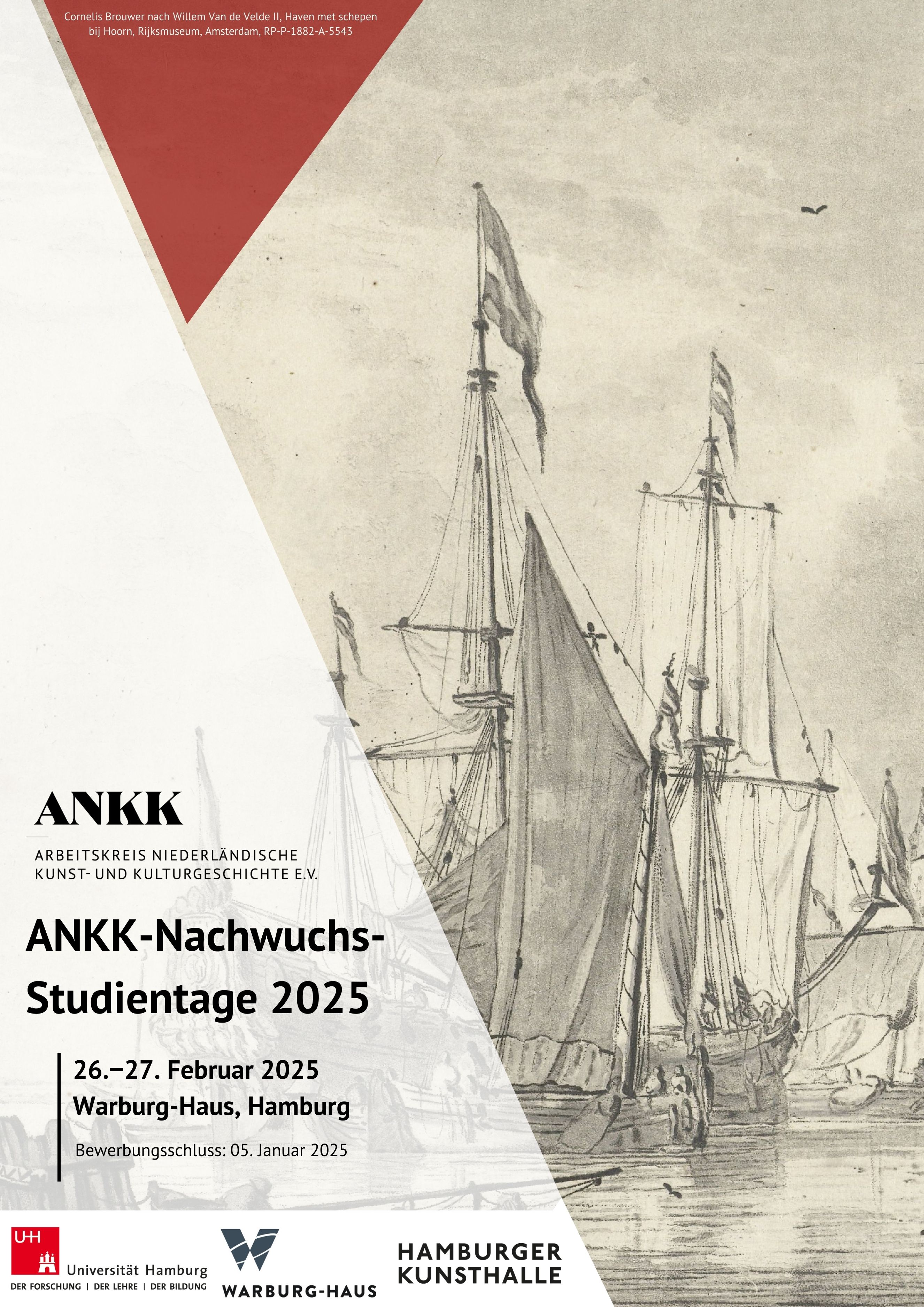 Die Nachwuchs-Studientage des ANKK e.V. sind ein Forum für einen Peer-to-Peer-Austausch über Forschungsthemen aus dem Bereich der niederländischen Kunst- und Kulturgeschichte vom Mittelalter bis zur Gegenwart. Sie richten sich an Promovierende und PostDocs sowie an Studierende, die eine Promotion anstreben. Das offene Format der Studientage sieht kein festgelegtes Thema vor, sondern eröffnet den Teilnehmenden vielmehr die Möglichkeit, kolloquiumsähnlich aktuelle oder angehende Forschungsprojekte, die sich auch noch in einem Work-in-Progress-Stadium befinden dürfen, in einem ca. 20-minütigen Vortrag in deutscher oder englischer Sprache vorzustellen und zu diskutieren.
